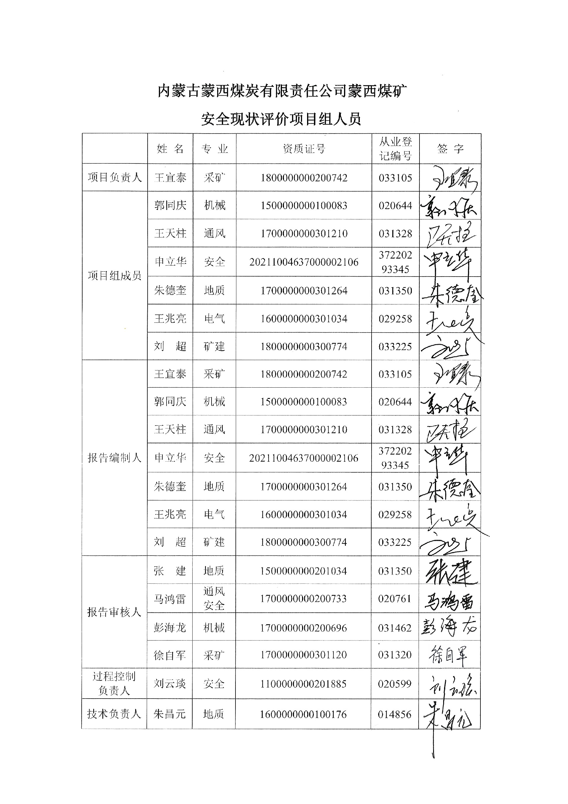 參與安全評價工作的注冊安全工程師: 王宜泰、郭同慶、王天柱、朱德奎、申立華、王兆亮 | ||||||