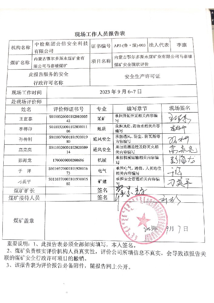4.1內(nèi)蒙古鄂爾多斯永煤礦業(yè)有限公司馬泰壕煤礦安全現(xiàn)狀評價