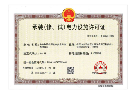 中檢集團山西宏宇安全科技有限公司(以下簡稱“宏宇公司”)通過一段時間的項目考察及調研,憑借在安全生產(chǎn)檢測檢驗領域的深厚積累與卓越實力,首次獲得國家能源局山西監(jiān)管辦公室頒發(fā)的電力承試···