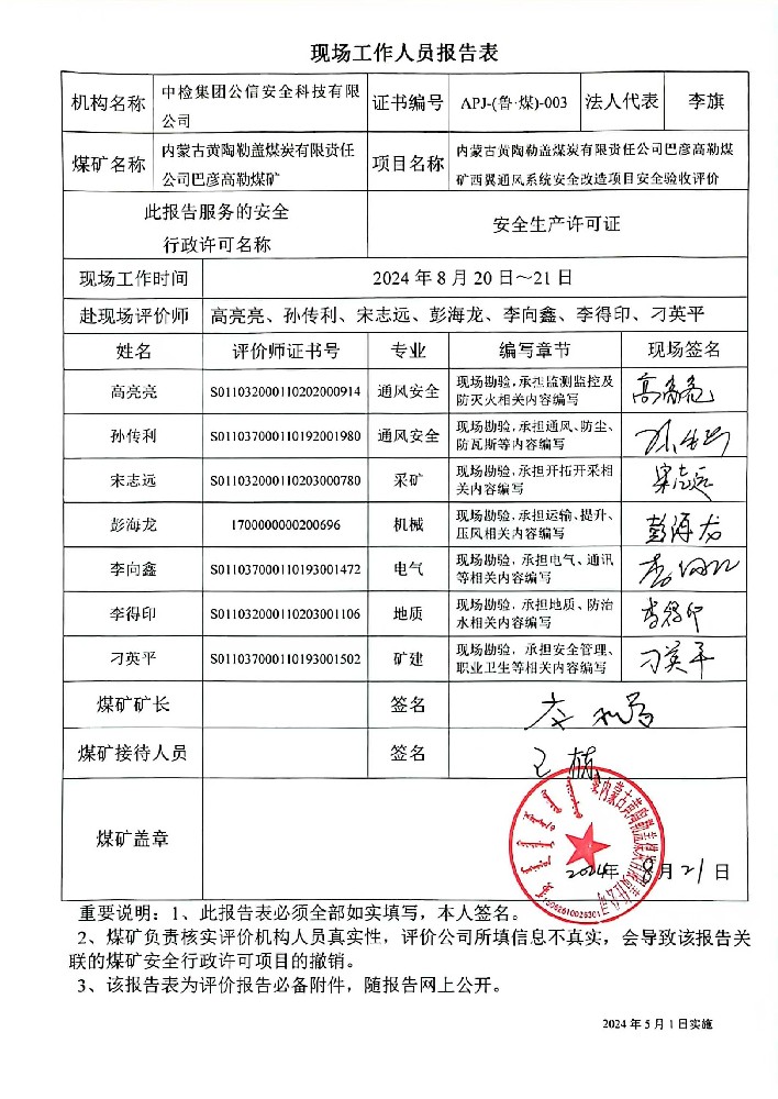 1內(nèi)蒙古黃陶勒蓋煤炭有限責任公司巴彥高勒煤礦西翼通風系統(tǒng)安全改造項目安全驗收評價報···