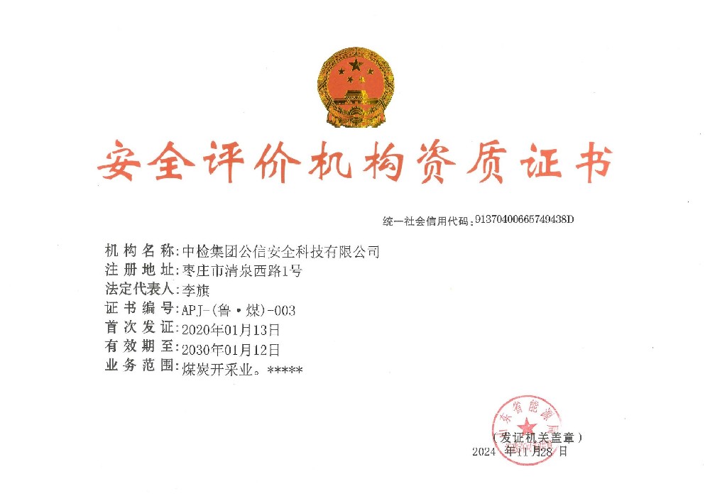 機(jī)構(gòu)名稱:中檢集團(tuán)公信安全科技有限公司證書(shū)編號(hào):(魯)衛(wèi)職技字(2021)第024號(hào)有效期至:2026年4月21日