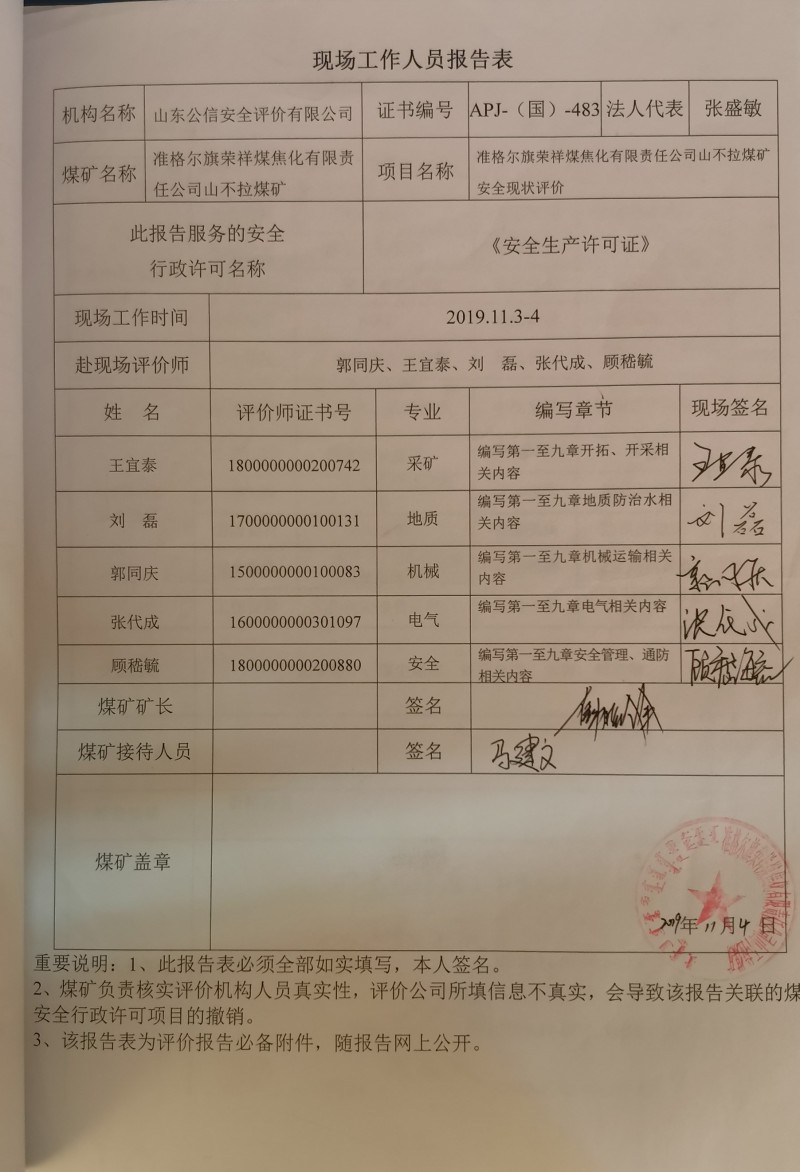 2020年第2季度1.準(zhǔn)格爾旗榮祥煤焦化有限責(zé)任公司山不拉煤礦安全現(xiàn)狀評價報告