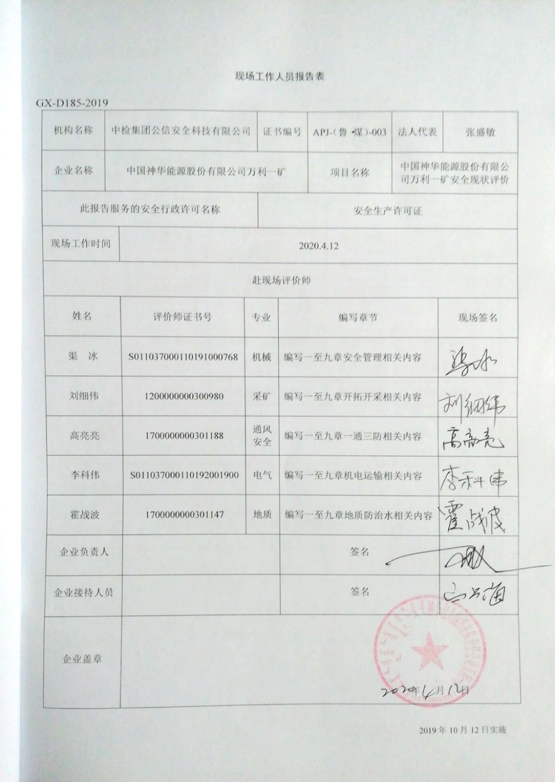 2020年第2季度4.中國神華能源股份有限公司萬利一礦安全現(xiàn)狀評價報告