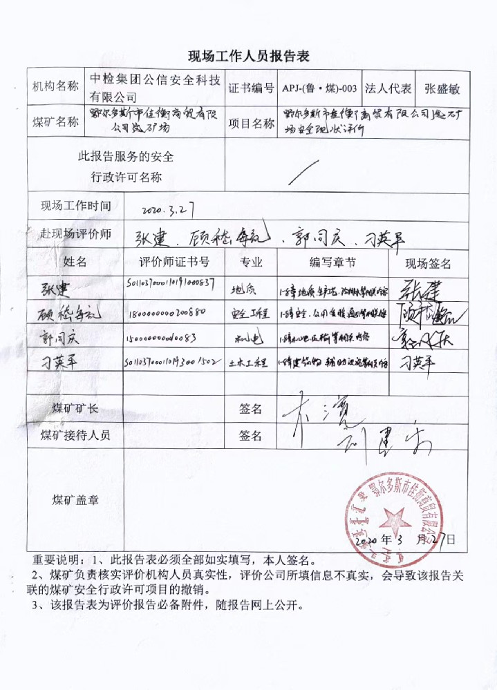 2020年第3季度2伊金霍洛旗興隆煤礦安全現(xiàn)狀評價