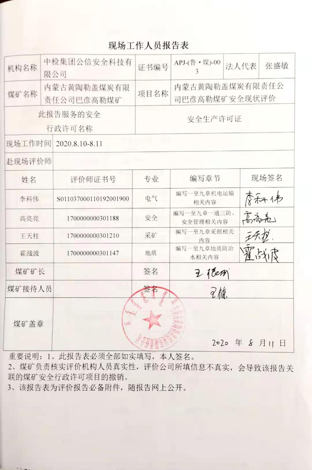2020年第4季度3.內(nèi)蒙古黃陶勒蓋煤炭有限責任公司巴彥高勒煤礦安全現(xiàn)狀評價報告