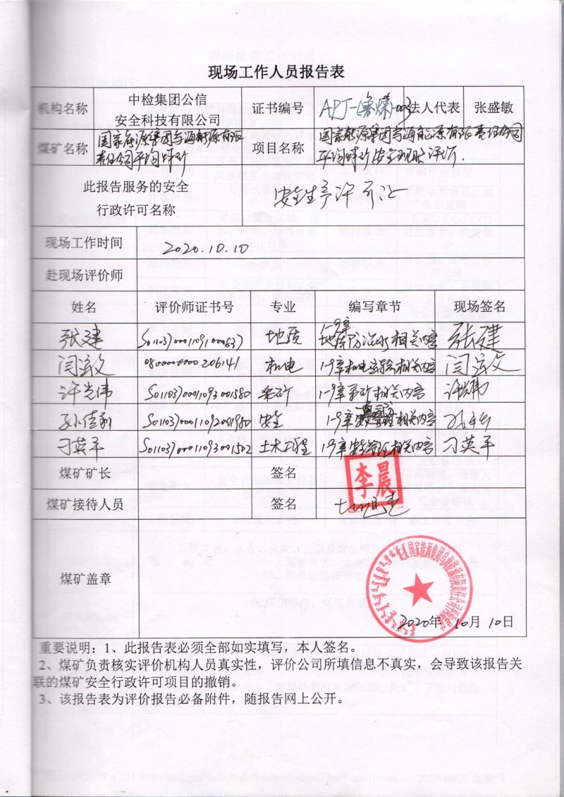 2020年第4季度2.內(nèi)蒙古鄂爾多斯永煤礦業(yè)投資有限公司馬泰壕煤礦安全現(xiàn)狀評價報告
