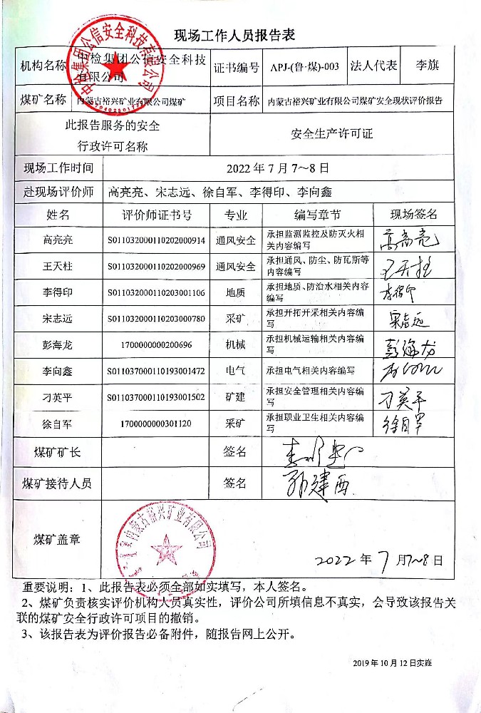 3季度2內(nèi)蒙古裕興礦業(yè)有限公司煤礦安全現(xiàn)狀評(píng)價(jià)報(bào)告