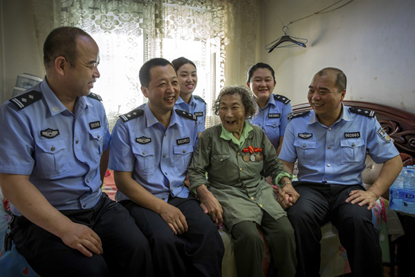 本溪市公安局平山分局南地派出所民警連續(xù)15年照顧轄區(qū)孤寡傷殘老兵的晚年生活。所長王義率派出所班子成員和部分民警在建軍89周年紀念日,拿著水果、夏涼被等生活用品看望功臣老兵姚樹清老人,并進行一次紅色基因的傳承教育。
