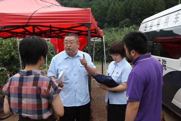 8月23日,于文良(左二)深入田間地頭調(diào)解土地糾紛