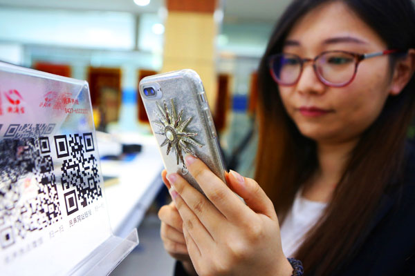 9月5日,一名工作人員在盤錦市興隆臺區(qū)網(wǎng)格管理中心演示如何用手機掃描民聲熱線二維碼