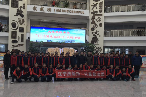 今年12月4日是我國第四個(gè)憲法日。遼寧青松律師事務(wù)所的王金海、紀(jì)樹海、馮丹丹、邢樹新律師,來到大連格致中學(xué),參加了這次以“學(xué)習(xí)貫徹黨的十九大精神、維護(hù)憲法權(quán)威”為主題的國家憲法日暨“憲法知識(shí)進(jìn)課堂”普法宣傳活動(dòng)課,學(xué)校18個(gè)班級(jí)的800余名同學(xué)參加了這次活動(dòng)。