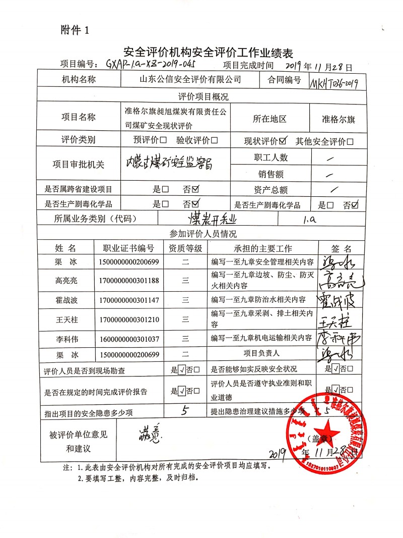 | 評價項目名稱 | 準(zhǔn)格爾旗昶旭煤炭有限責(zé)任公司煤礦安全現(xiàn)狀評價報告 | ||||||