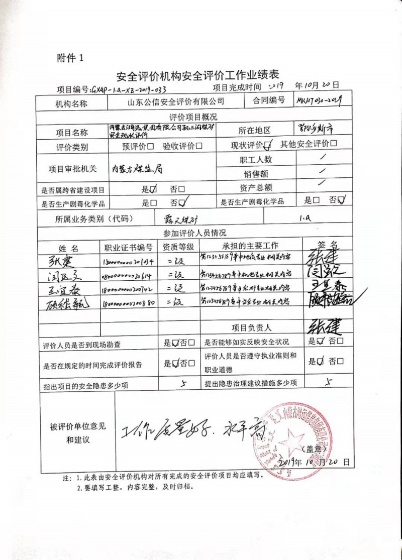| 參與安全評價工作的注冊安全工程師: 閆運文 王宜泰 |