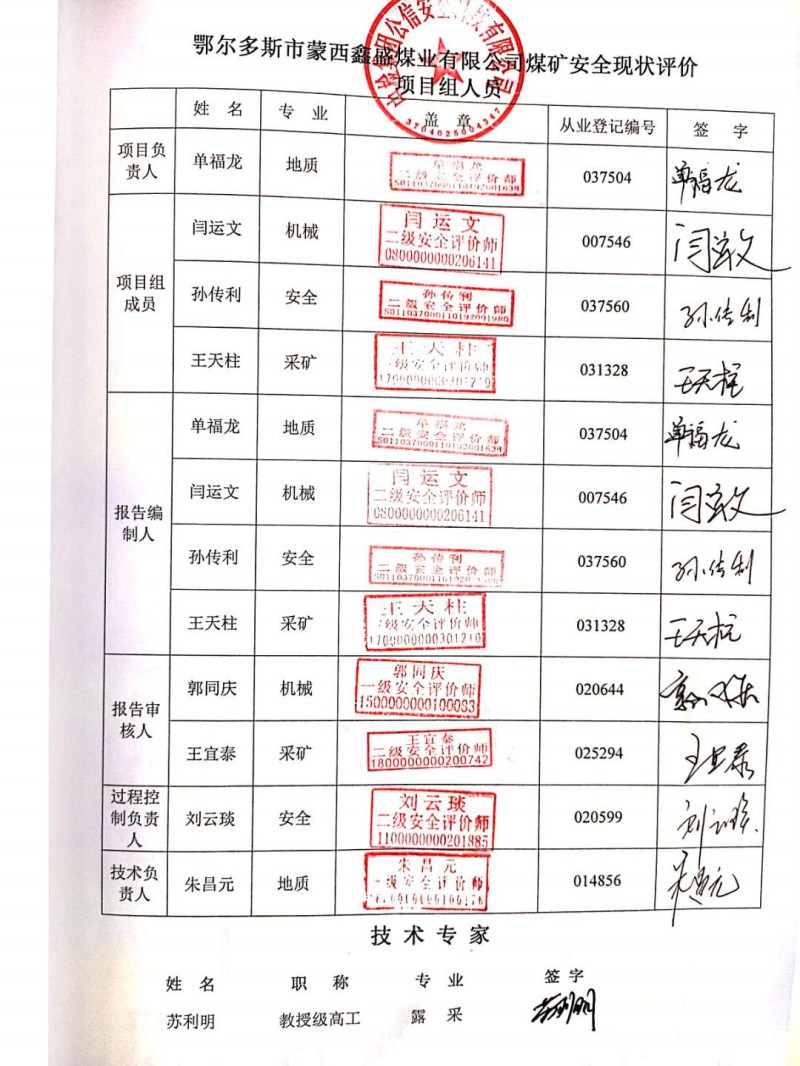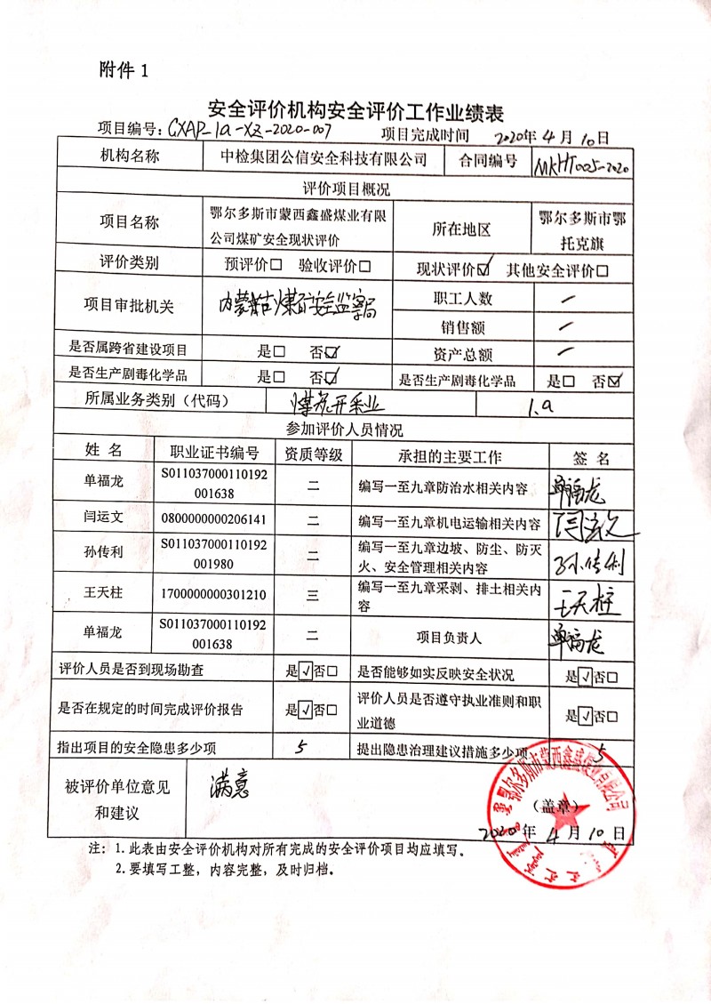 評價項目名稱 鄂爾多斯市蒙西鑫盛煤業(yè)有限公司煤礦