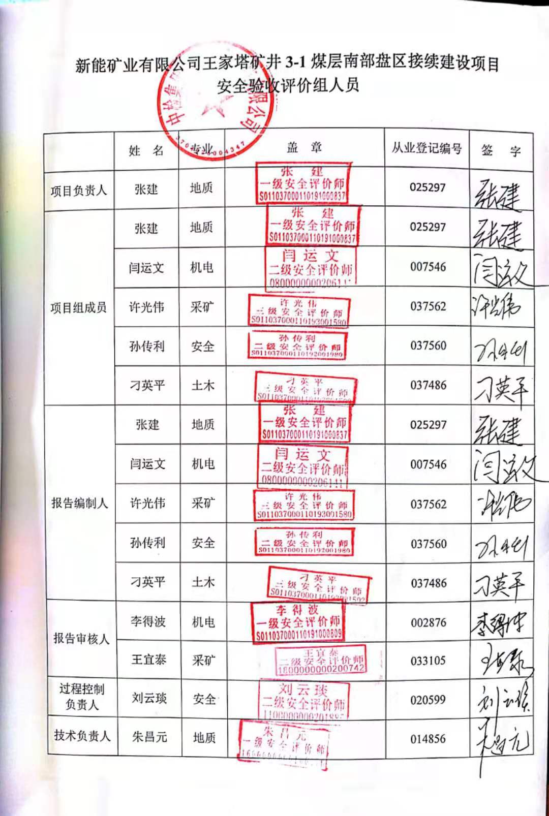 評(píng)價(jià)項(xiàng)目名稱 新能礦業(yè)有限公司王家塔礦井3-1煤層南部盤區(qū)接續(xù)建設(shè)項(xiàng)目安全驗(yàn)收評(píng)價(jià)報(bào)告