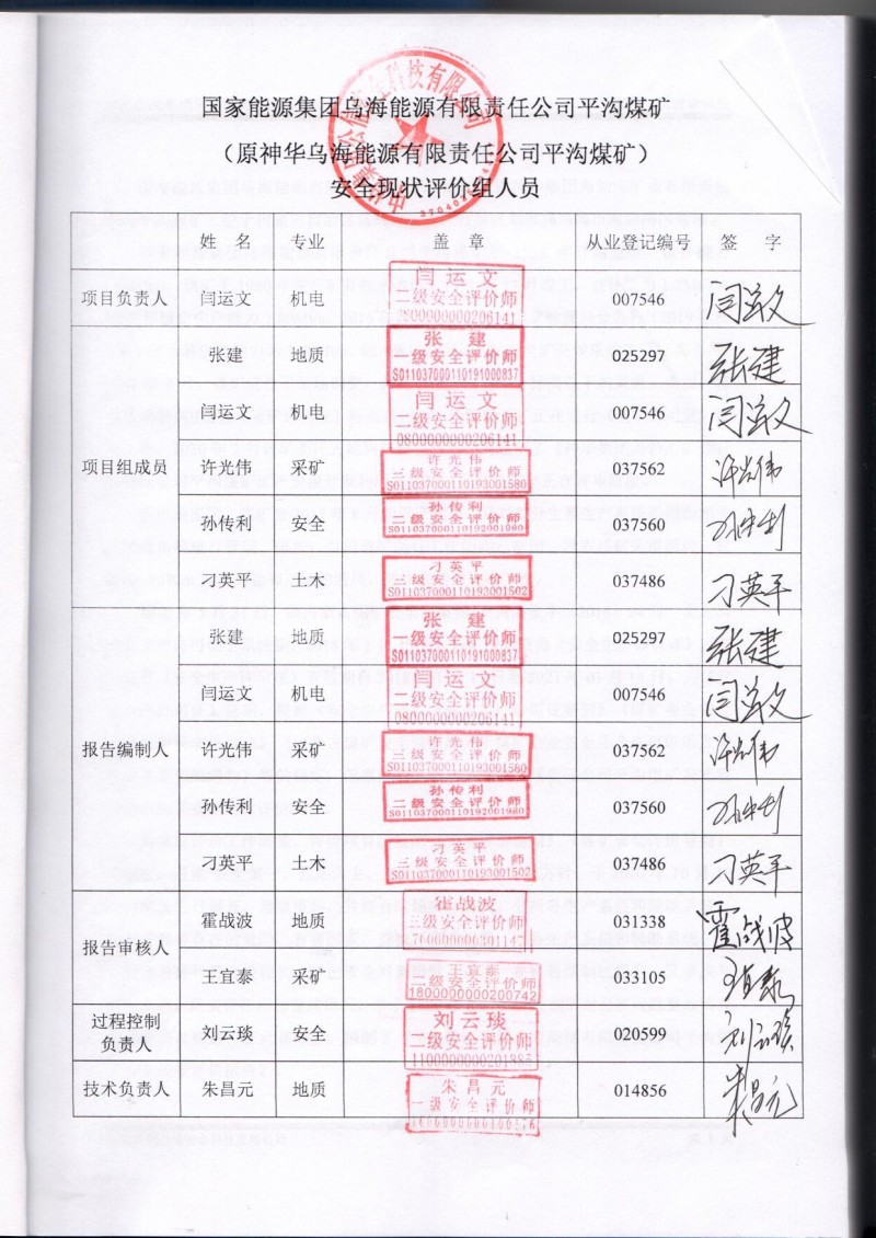 | 評價項目名稱 | 國家能源集團烏海能源有限責(zé)任公司平溝煤礦安全現(xiàn)狀評價報告 | ||||||