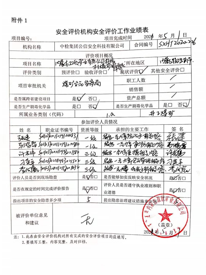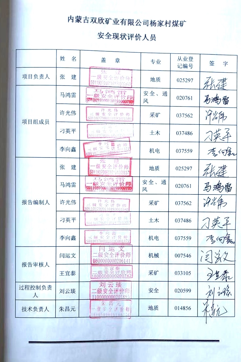 評價項目名稱 內(nèi)蒙古雙欣礦業(yè)有限公司楊家村煤礦