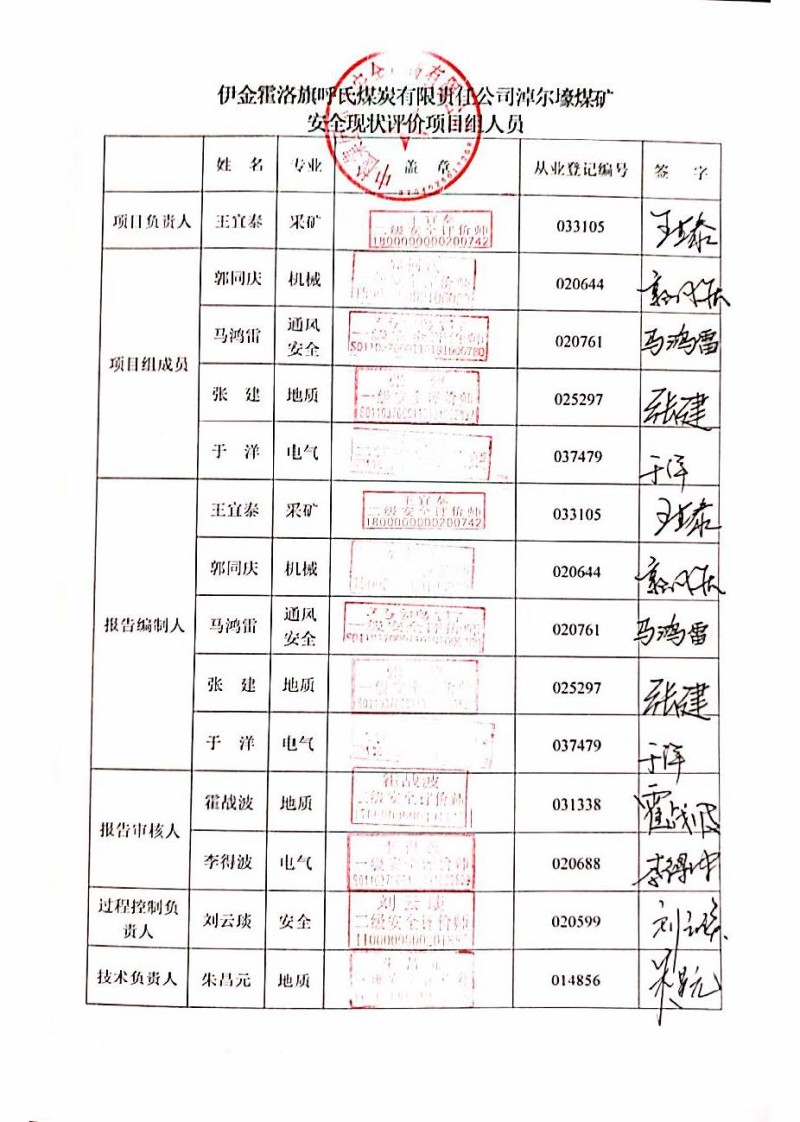 | 參與安全評(píng)價(jià)工作的注冊(cè)安全工程師: 馬鴻雷、郭同慶、王宜泰 |
