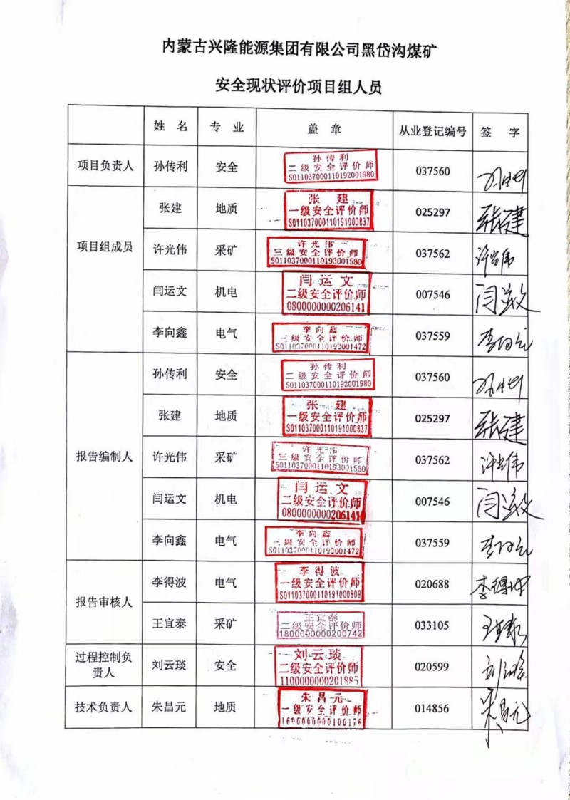 | 評價項目名稱 | 內(nèi)蒙古興隆能源集團(tuán)有限公司黑岱溝煤礦安全現(xiàn)狀評價 | ||||||