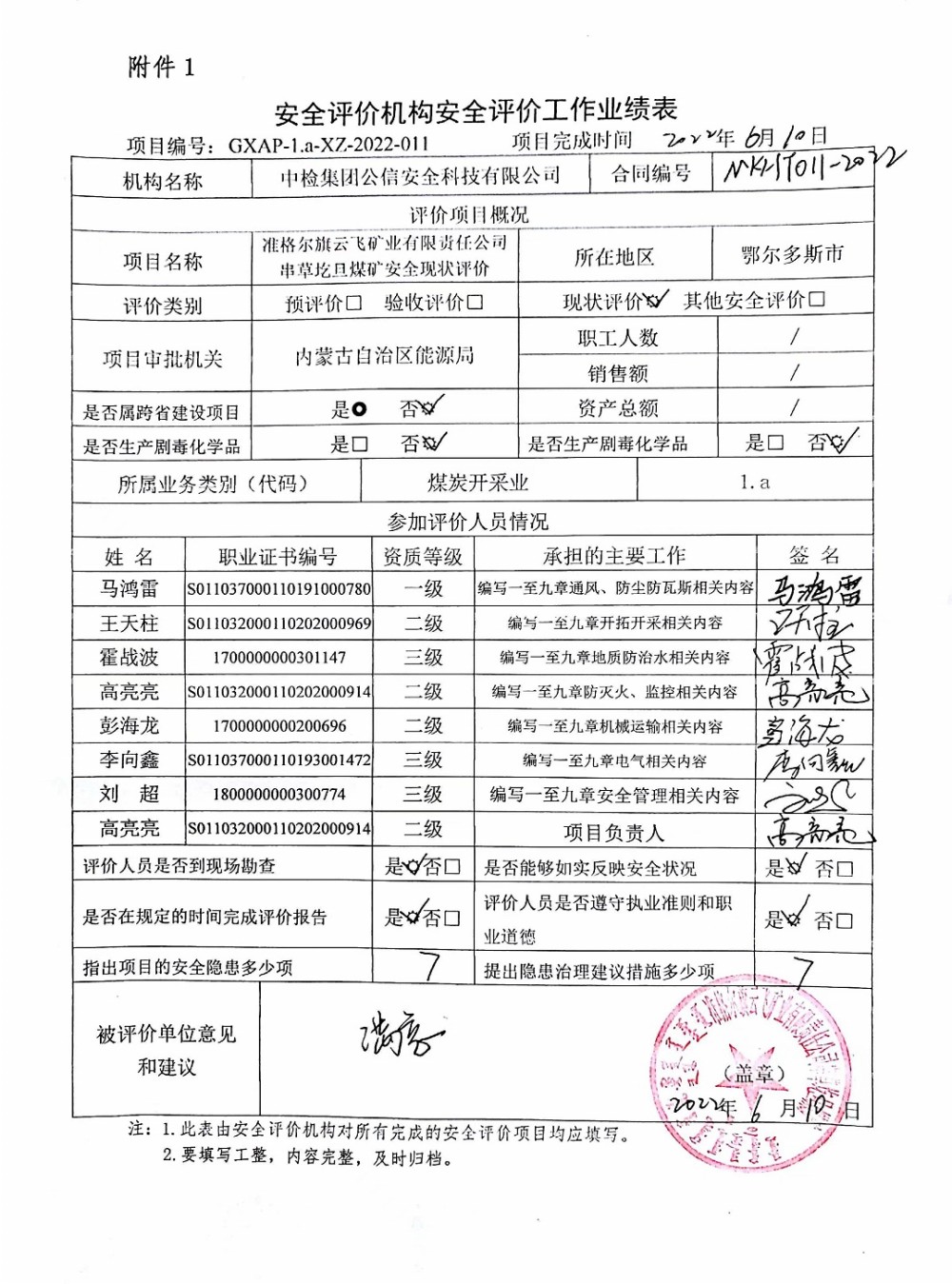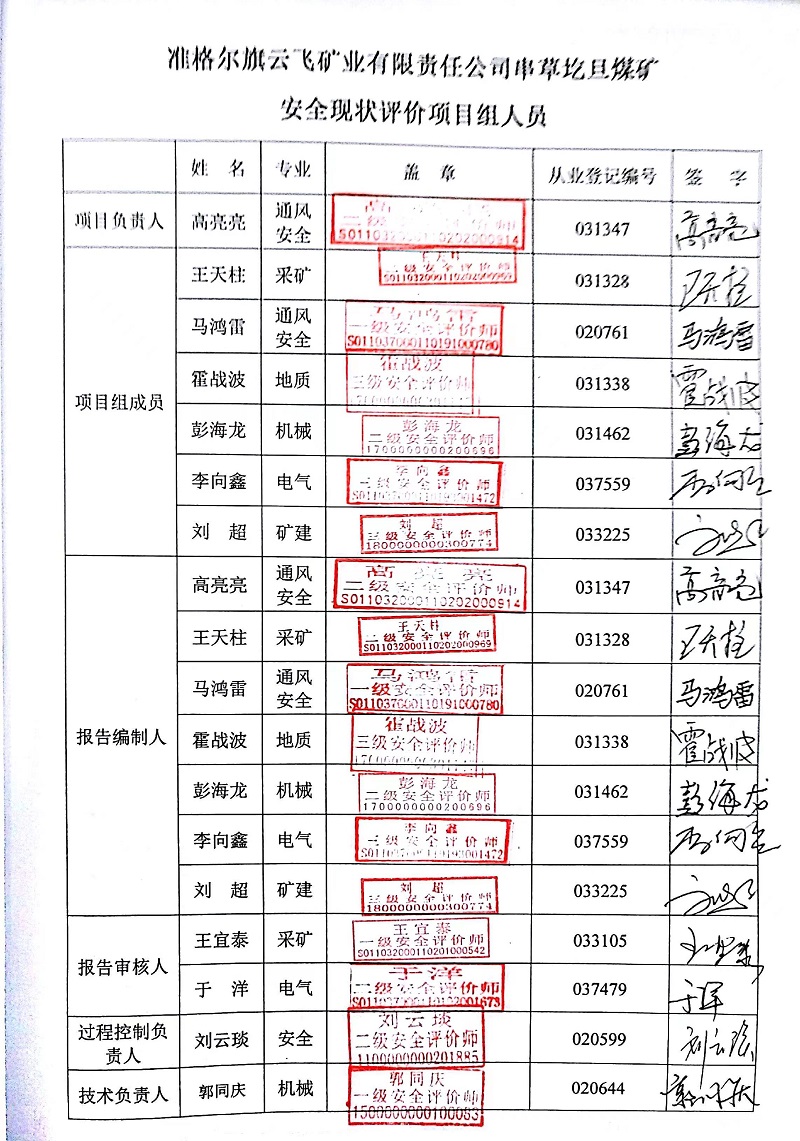 | 評價項目名稱 | 準(zhǔn)格爾旗云飛礦業(yè)有限責(zé)任公司串草圪旦煤礦安全現(xiàn)狀評價 | ||||||