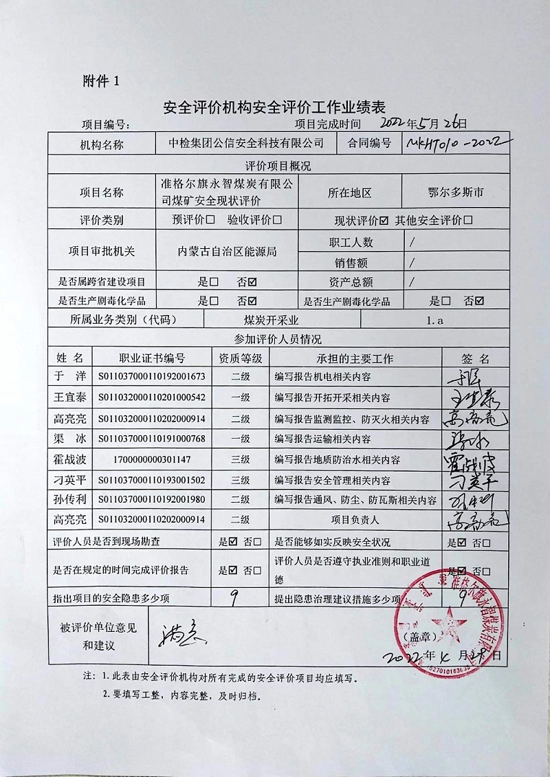 | 評(píng)價(jià)項(xiàng)目名稱 | 準(zhǔn)格爾旗永智煤炭有限公司煤礦安全現(xiàn)狀評(píng)價(jià)報(bào)告 | ||||||