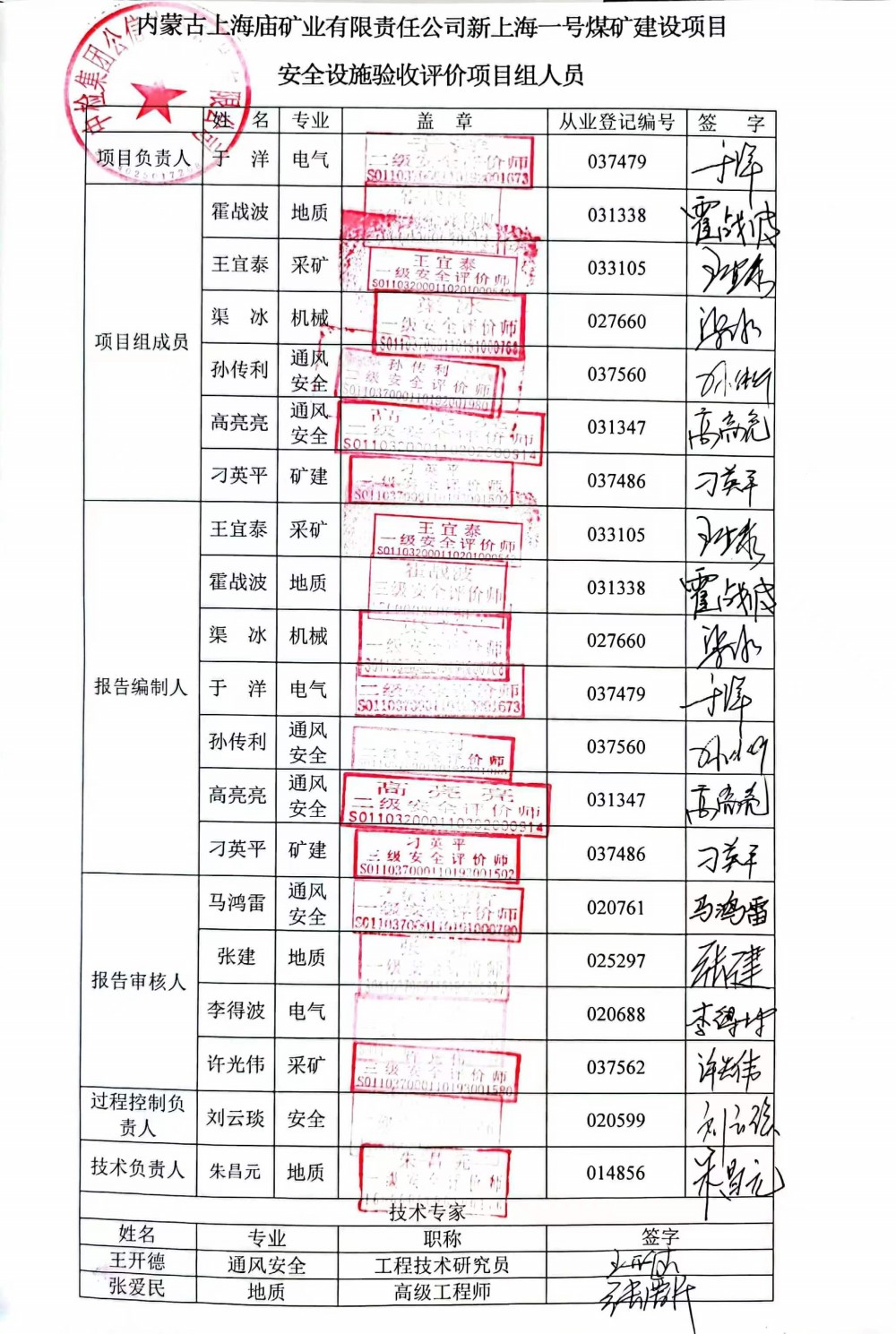 | 評價項目名稱 | 內(nèi)蒙古上海廟礦業(yè)有限責任公司新上海一號煤礦建設項目安全驗收評價報告 | ||||||